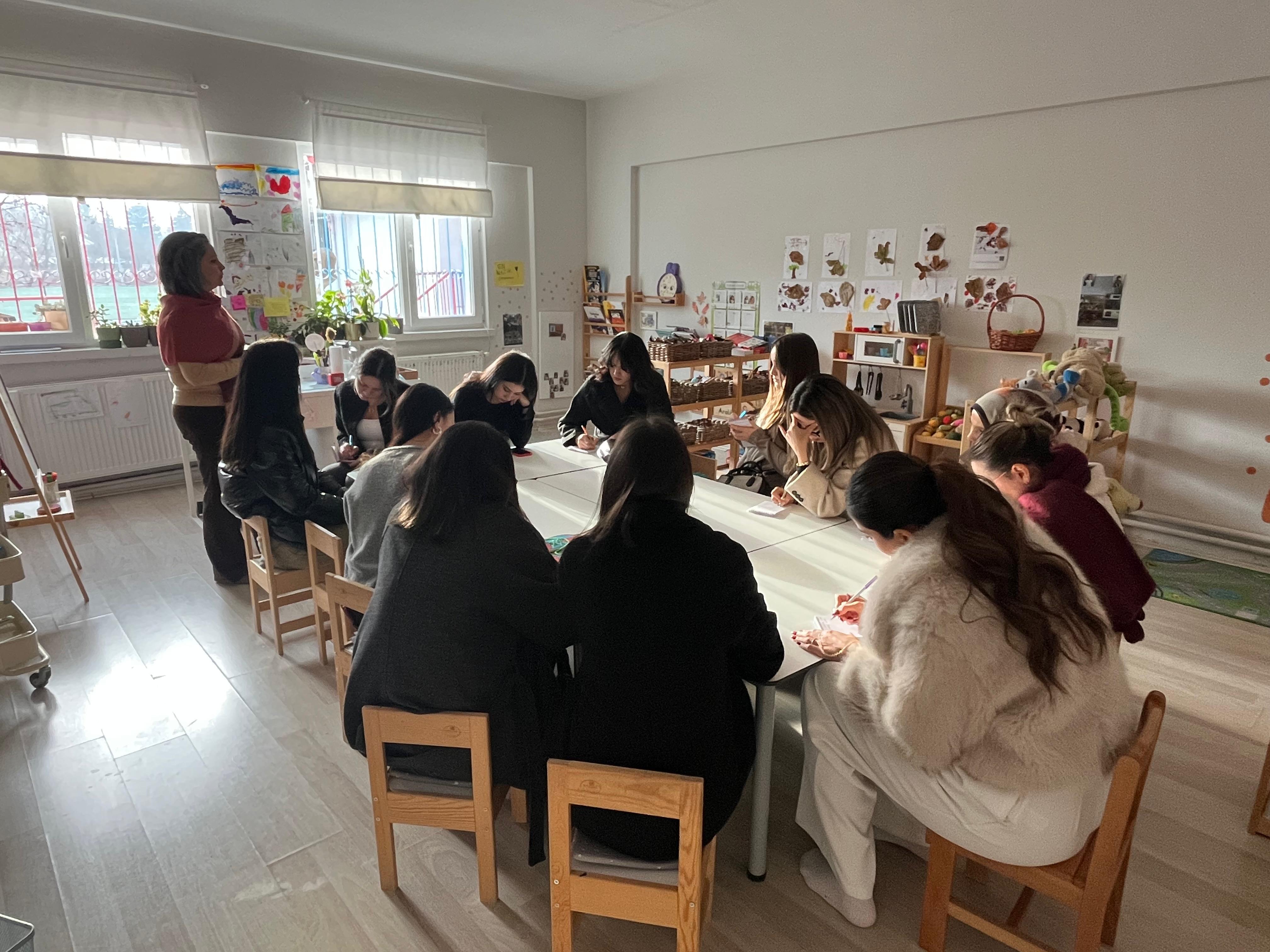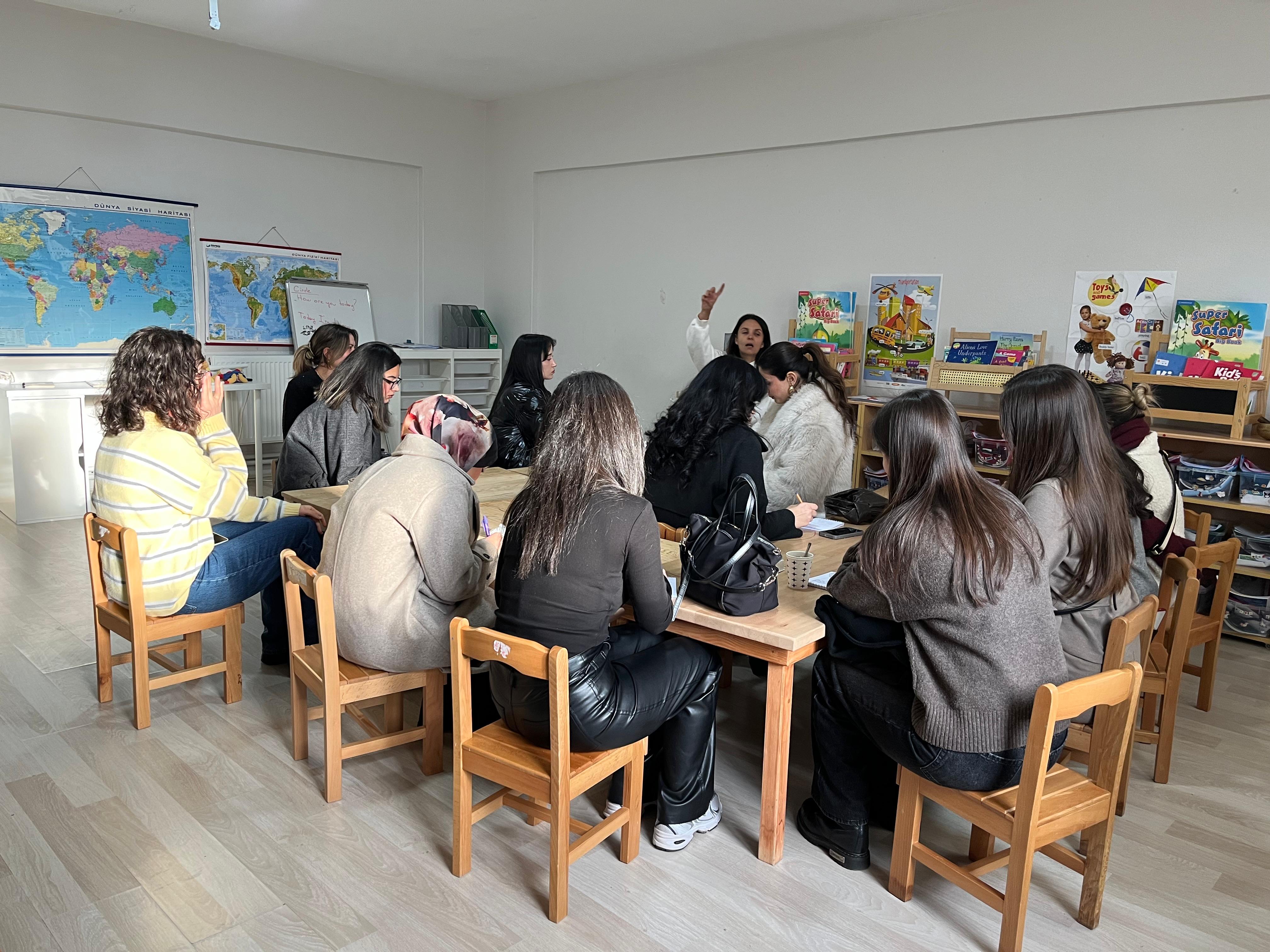 As part of this field visit, teacher candidates had the opportunity to observe the democratic school model discussed theoretically in the course and its practical applications in the field. During the visit, practices related to the active roles of teachers, children, and families in the school’s decision-making processes, the consideration of children’s preferences and choices in the planning of the daily routine, and the monthly agendas and functioning of the school council were examined.